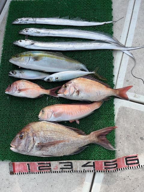 釣果 マダイ 3枚、ハマチ1匹、アマダイ1匹、タチウオ3匹、小鯖2 匹でした。