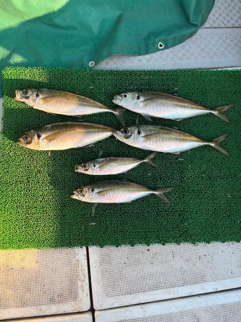 潮止まり前にハス、タイサビキ、クログチいろいろ狙いましたが、魚信が無く、下げ潮になり出したので、アジ狙いでやっと魚信が有りました。鬼アジは43cm位でした。